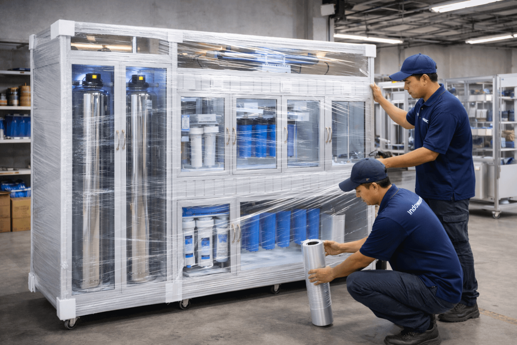 - semua paket depot air minum dikirim dengan kedaan sudah terangkai seluruh komponennya, pembeli hanya tinggal menyambung sumber air ke pompa air dan tabung media filter, jadi bisa dipasang sendiri tanpa harus menggunakan jasa teknisi mesin air minum.